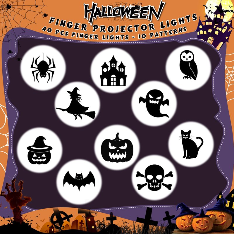 - 【Halloween Party Favors】 The Halloween LED Finger Projector Lights are unique designs for Halloween, you will get 40 pcs Finger Projector Lights in 10 colors (10 patterns). Each light projects a Halloween theme pattern out when you press the button, turn out super cool, fun Halloween toys for kids.