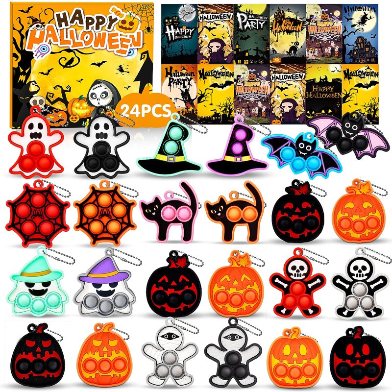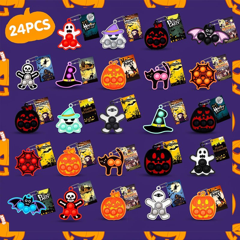 Halloween Party Favors for Kids 24 PCS Halloween Pop Fidget its Keychain,Halloween Toys Treats for Kids,Halloween Goodie Bag Stuffers,Halloween Classroom Prizes,Halloween Fidget Toys