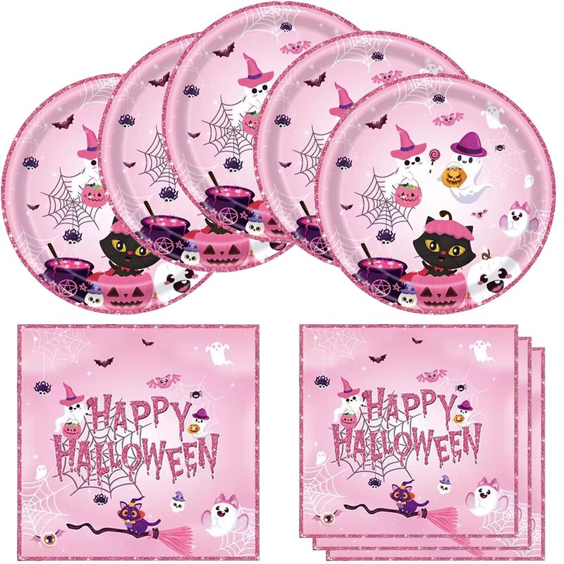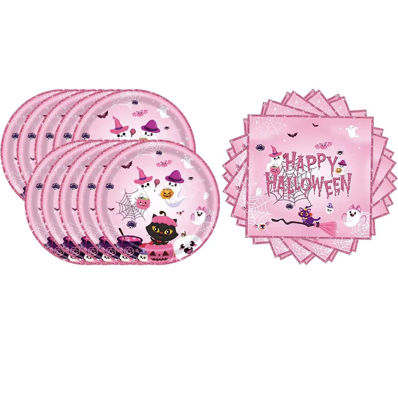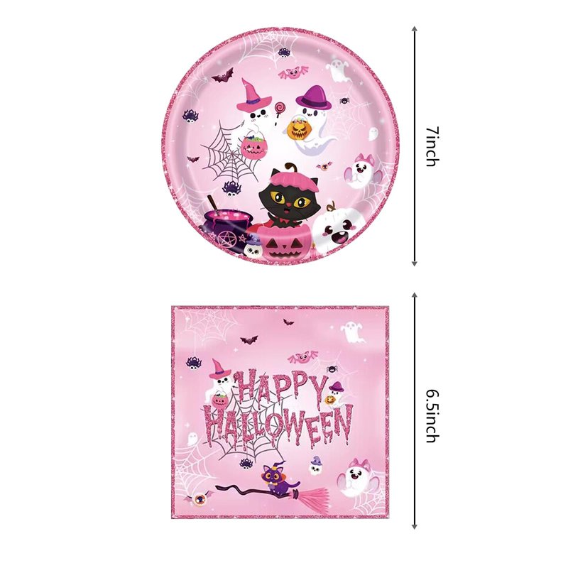 - 1.You will get: 20pcs Pink Halloween plates and 20pcs Pink Halloween napkins.