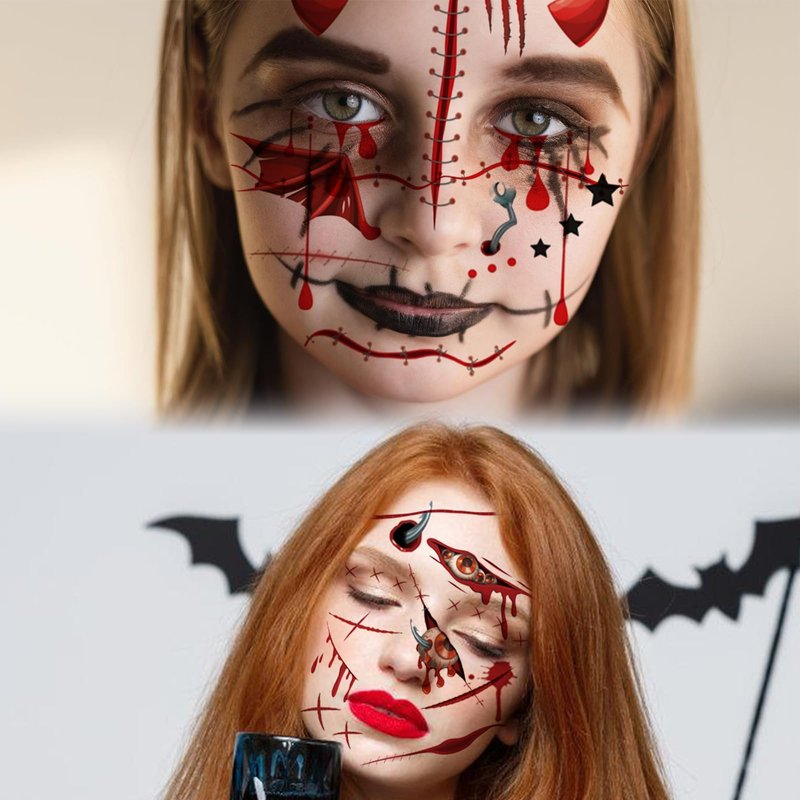 - 🎃Perfect for Any Occasion: Unleash Your Inner Halloween Spirit!With 24 different styles of realistic Halloween temporary face tattoos, you can create a unique and horror look that's perfect for any occasion. Whether you're attending a Halloween party, cosplay event, or just want to add some horror elements to your everyday look, these halloween makeup tattoos are perfect for you.