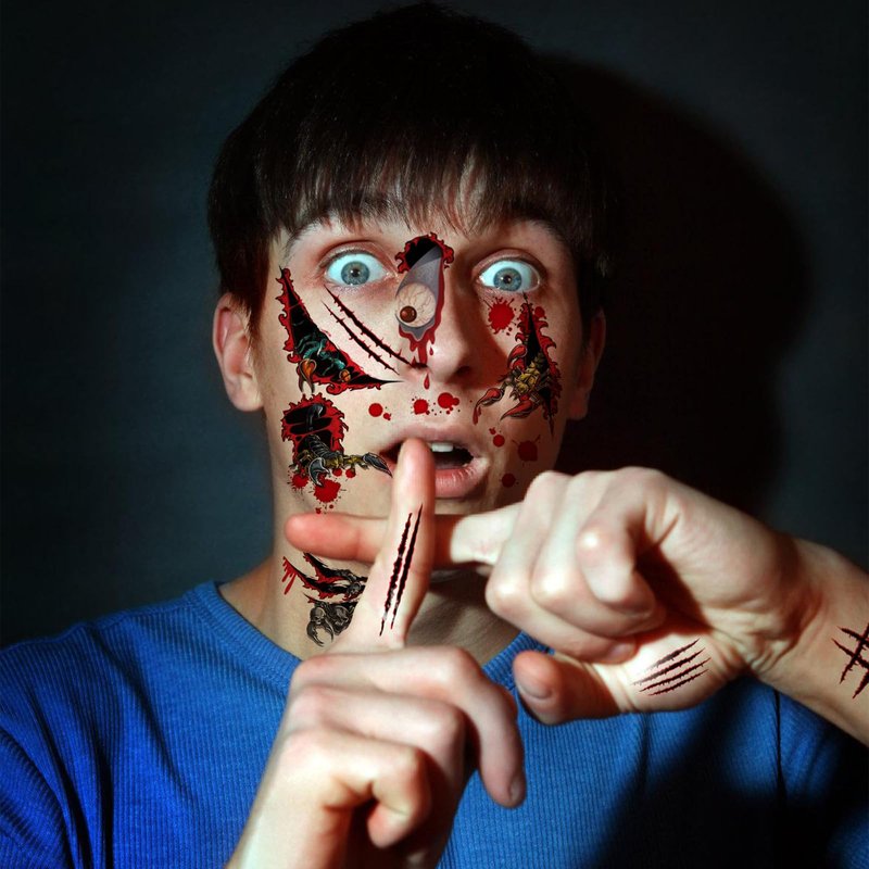 - 🎃Unleash Your Creativity - Our realistic Halloween temporary tattoos are perfect for creating unique and horror looks. You can combine the horror tattoos we offer (including horror mouths, scars, spiders, wounds, skulls, pumpkins and other elements) to make them fit your unique style. Perfect for cosplay, masquerades, and Halloween parties!