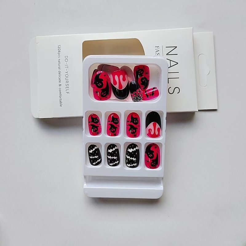 Halloween fake nails/false nails can last longer if you clean your nails carefully before application and avoid contact with water for the first hour after wearing them.With your careful company,nail stickers can generally last for 3-7 days if you use jelly glue, and can last up to 16 days if you use nail glue.