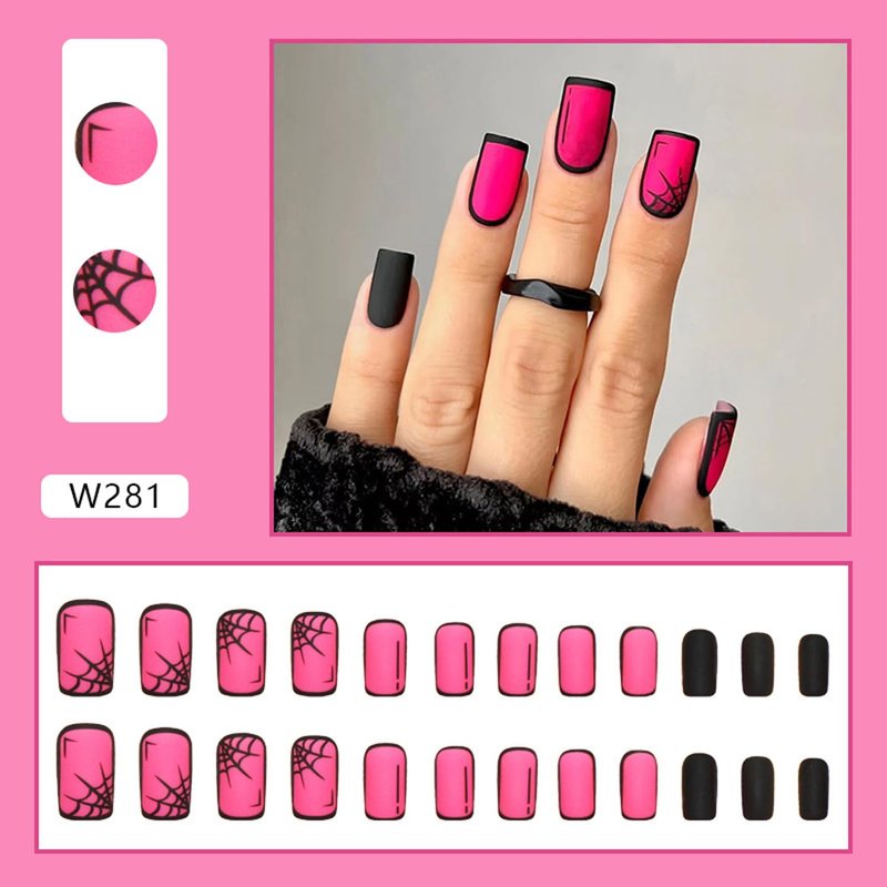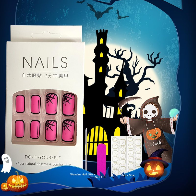 - 【Easy to Use】:Choose the suitable fake nails with spider web designs, polish the nail bed, paste the jelly glue we give you, press the fashion nail art in 30 seconds, and create the halloween nail art that girls like,If the size is not suitable, it can be polished to the size of the nail cap with a friction tool.