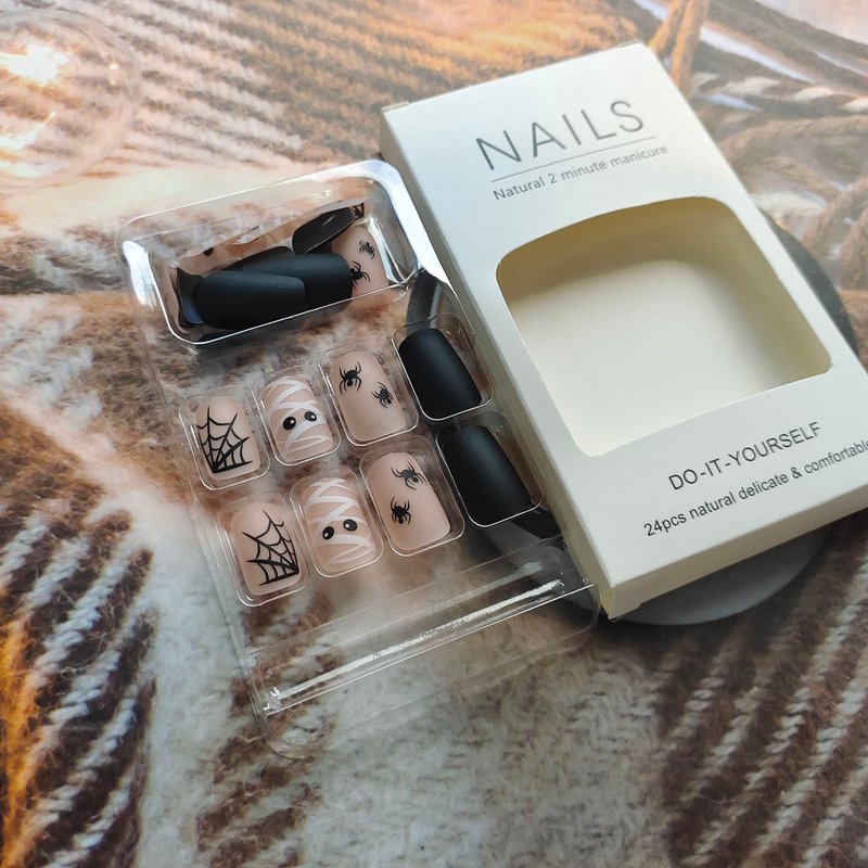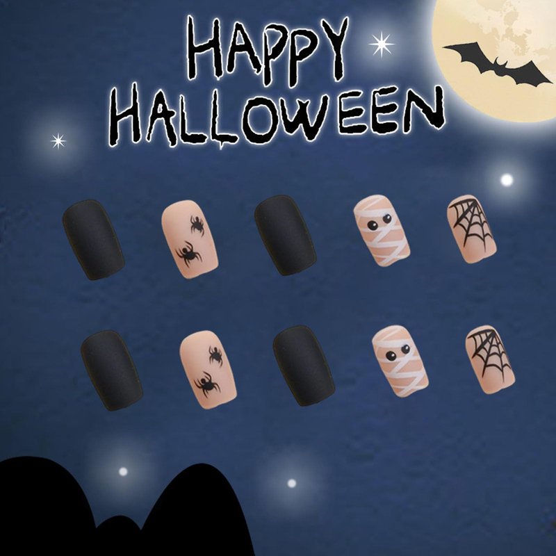 - Halloween Press on Nails: The package include 24pcs short press on nails with halloween element, 24pcs jelly glue, 1pc nail file, 1pc nail remover and 1pc alcohol cleaning pad.