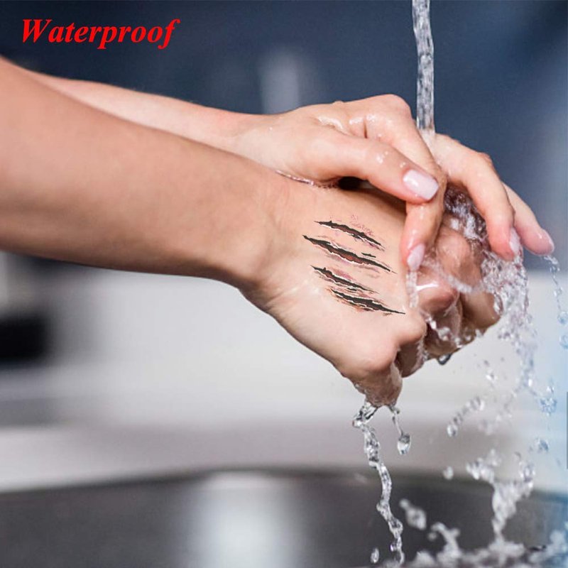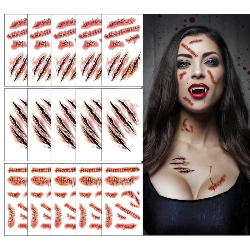 - 【PERFECT HALLOWEEN TATTOO SET】 Very Horror Realistic Fake Bloody Wound Stitch Scar Scab.Great trick to astonish and scare your friends, perfect temporary tattoos for Halloween makeup kit, zombie makeup kit or vampire bite tattoo cosplay and more parties.