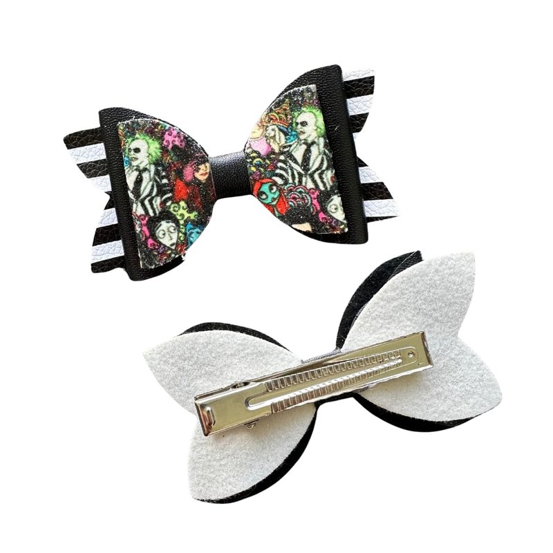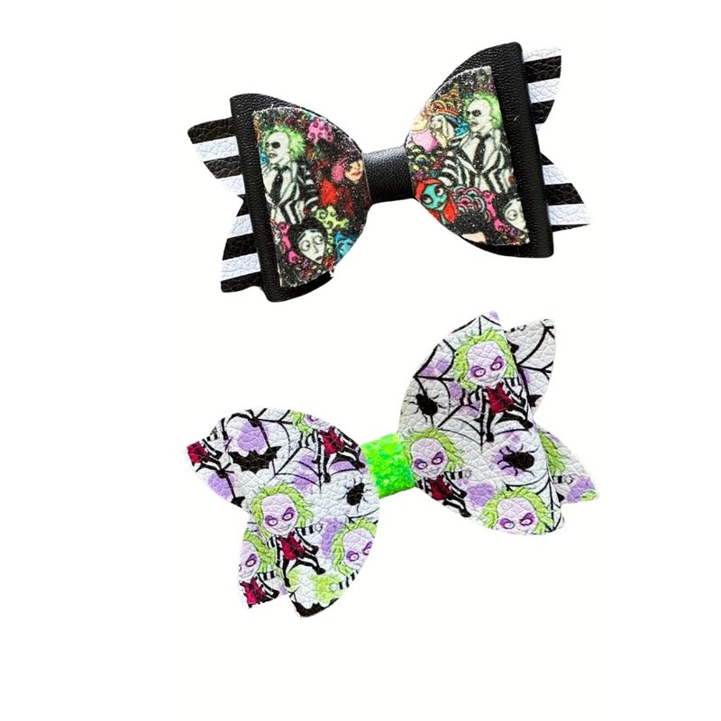 Halloween Scary Movie Inspired Hair Bow Set - Leather and Glitter Bows