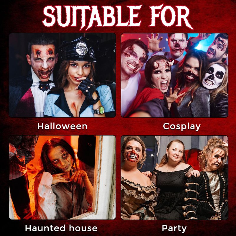 - Unleash Your Imagination: It can be used to create crazy looks such as fake noses or fingers, bullet holes, zombies, vampires in costumes, scary fake wounds. Perfect for Halloween make-up, zombie costumes, cosplay, SFX make-up. Beginners can also easily create realistic effects