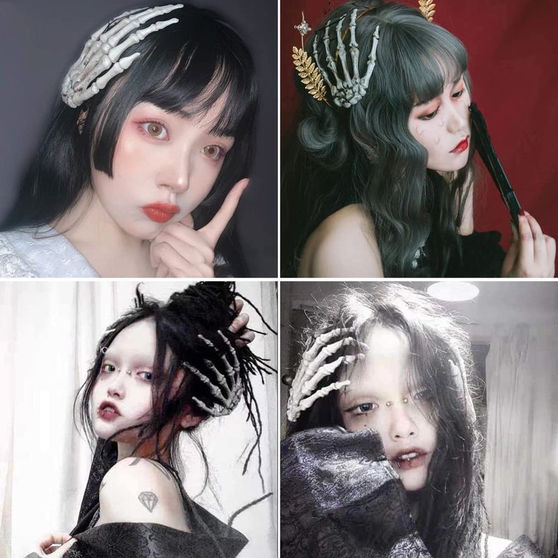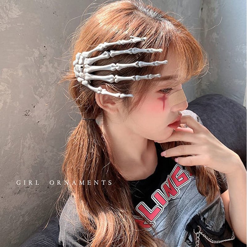 Skeleton hand bone hair clips are designed realistic, and you can wear them and match them with suitable clothes, then, take photos to record how you spent Halloween that year.
