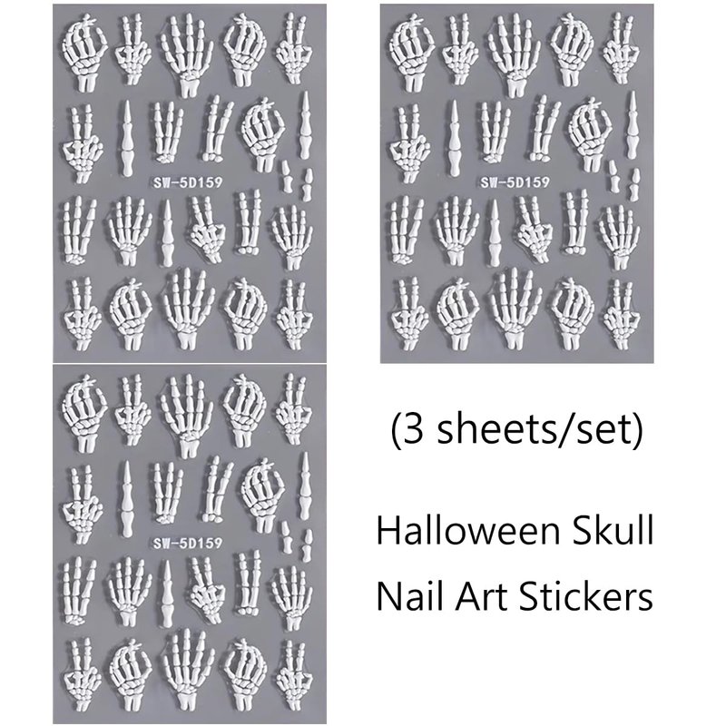 - Halloween Skull Nail Art Stickers Nail Stickers - You will get 3 sheet of Halloween nail stickers for acrylic nails, there are a variety of patterns for you to choose, fashionable and elegant design, satisfying your rich imagination of nail DIY.