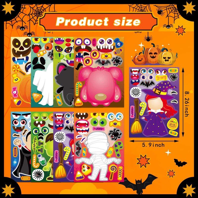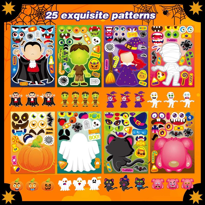 - DIY Halloween Sticker: You will receive 24 sheets Halloween-themed stickers, which can meet your Halloween decoration needs, and the additional face options can also be used as a pumpkin decorating kit. Let you and your children have a happy Halloween