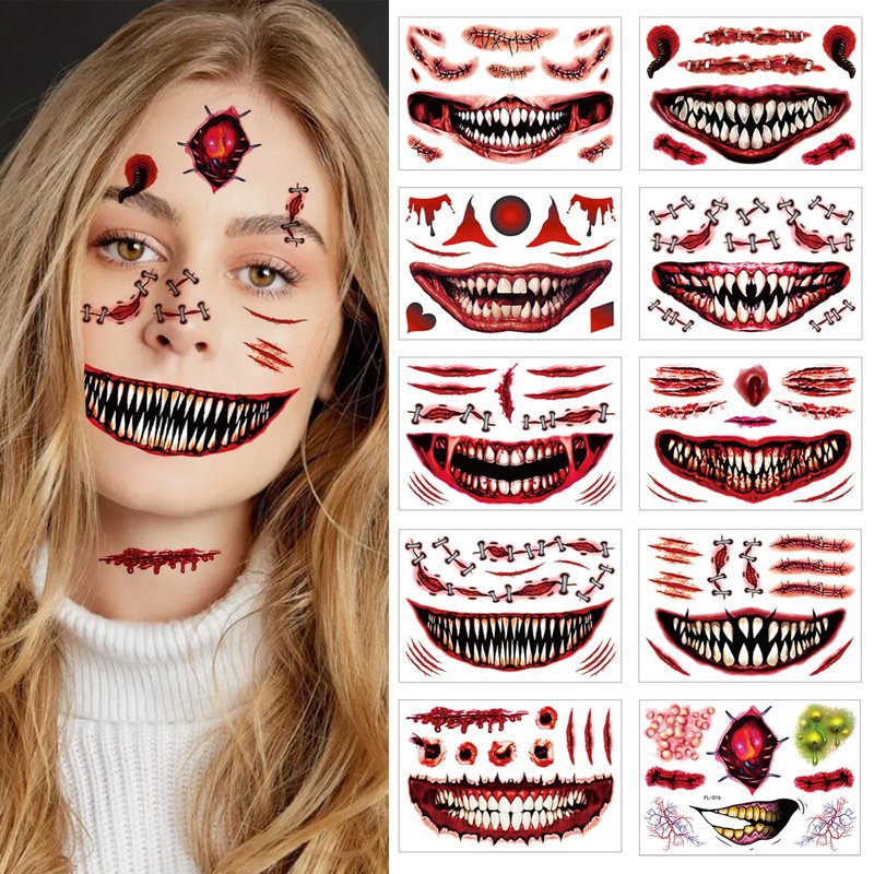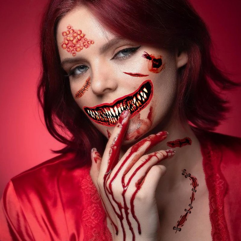 Halloween Day of the Dead Scary temporary mouth wound Scar Blood Adult women makeup Face Tattoo stickers Makeup party supplies Fun art accessories