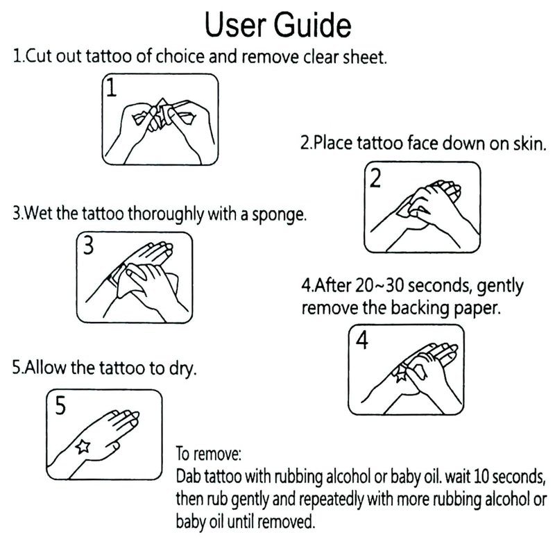 - Easy to Use: Cut out the pattern you choose, and then face down on skin, wet the tattoo with water and wait for 20 seconds. When you remove it, you only need to use baby oil or alcohol to wipe it back and forth. After pasting, the product has good adhesion, smooth surface and friction resistance. Tips: Luminous tattoos can to be activated under light for a few minutes, which can make them more luminous in the dark.