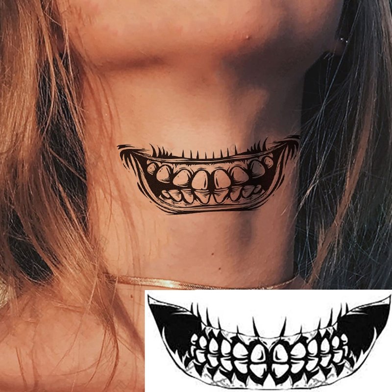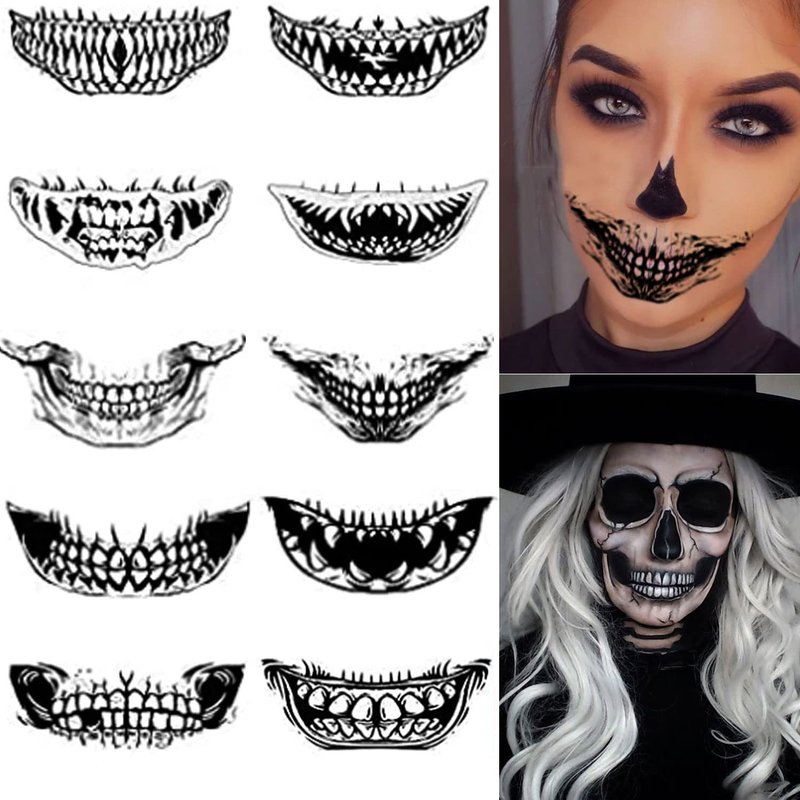 Halloween Temporary Tattoos Mouth Dark Black Face Mouth Teeth Stickers Terror Waterproof Ornaments for Adults kids 10pcs Halloween Tattoos Stickers Decal Party Decoration Supplies