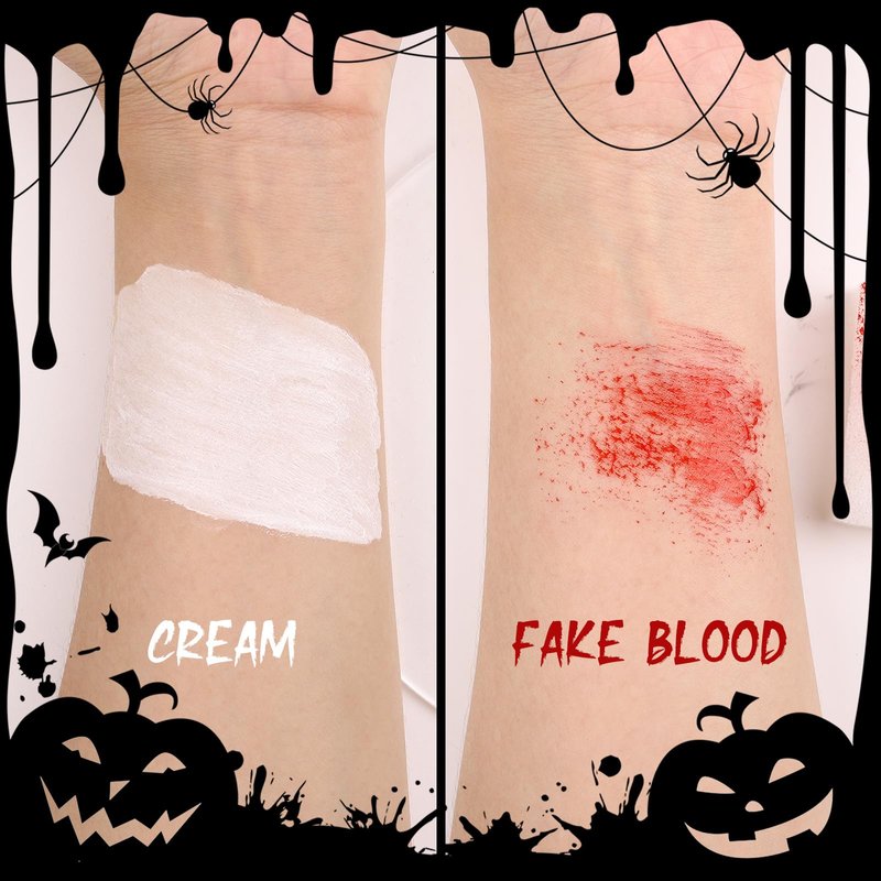 - 【Halloween Vampire Makeup Kit】Includes white face & body paint(28.3g), realistic fake blood(28.3ml) and Applicator, this easy to carry fx makeup kit can satisfy your special effects makeup needs, allowing you to easily create realistic and natural wound special effects.
