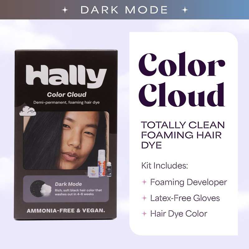 Hally Hair Color Cloud Hair Dye (Dark Mode) - Demi-Permanent Foam Hair Color for Women & Men - Mess-Free & Long-Lasting Hair Dye Kit, Hair Coloring Products Wash Out in 4-6 Weeks, Vegan
