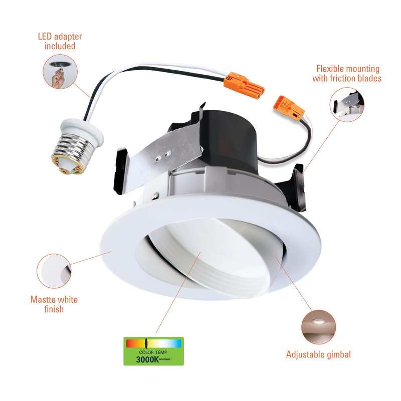 - HIGHER QUALITY WITH HALO: The HALO RA406930WHR is made from durable die-cast aluminum and painted in HALO matte white finish. Title 20 California compliant. For retrofitting existing housings with screwbase adapter included.