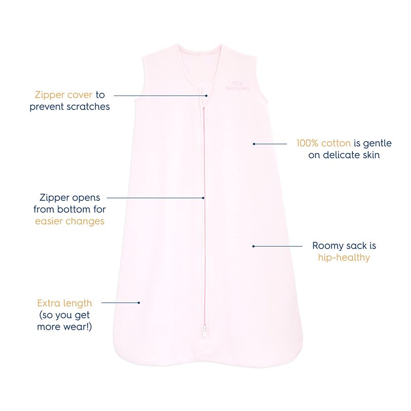 HALO SleepSack, 100% Cotton Wearable Blanket, Swaddle Transition Sleeping Bag, TOG 0.5, Soft Pink, Small, 0-6 Months