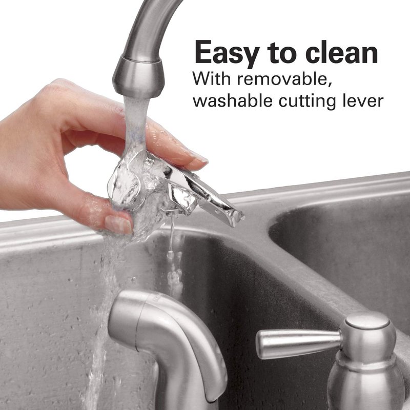 - EASY TO CLEAN: The washable cutting lever on the electric can opener easily removes to rinse clean under the faucet.