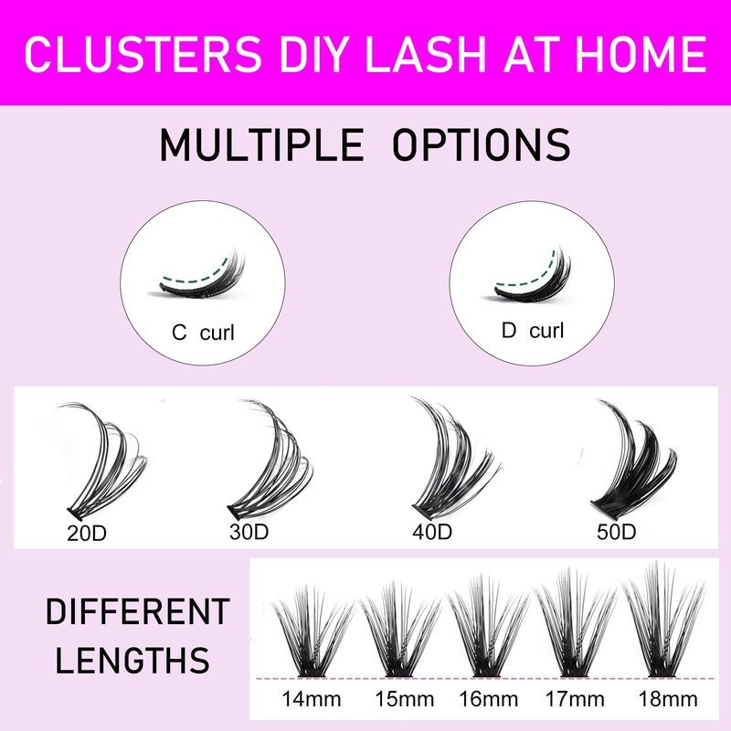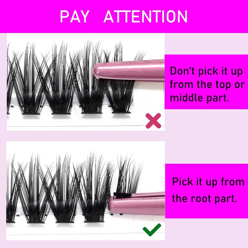 - 【Suitable to wear】: Use a tweezer to pinch the band of cluster eyelashes and apply lash clusters below your natural lashes. You can barely feel the cluster lashes. The bottom of the clusters is flat and hardly noticeable. The lash band part will not stab your eyelid area when you blink. Bring you a perfect experience during lash application.