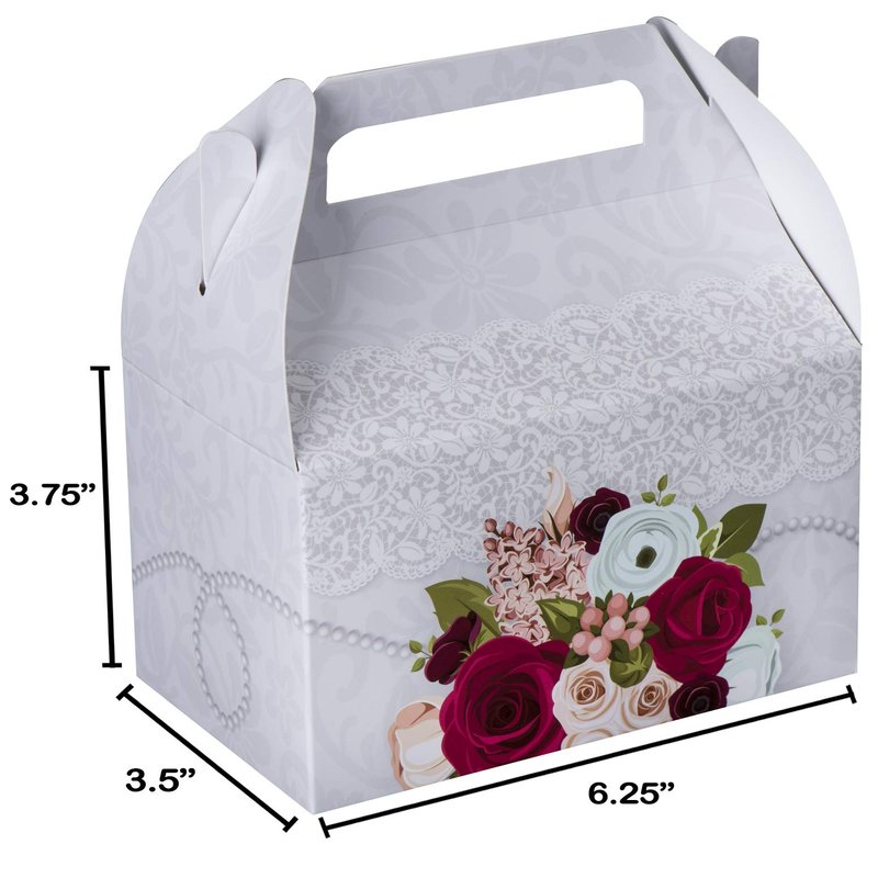 Hammont Paper Treat Boxes - Party Favors Treat Container Cookie Boxes Cute Designs Perfect for Parties and Celebrations 6.25" x 3.75" x 3.5" (10 Pack) (Bridal)