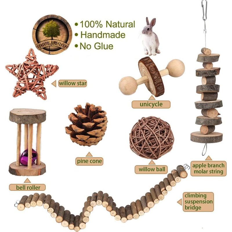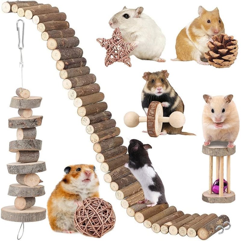 - 【NATURAL AND HANDMADE MOLAR TOYS】Our hamster toys are made of natural bite-resistant wood ,very safe for your small pets biting and chewing.They will enjoy a lot of time playing with these hamster toys and accessories,keep your pet friends active and healthy.