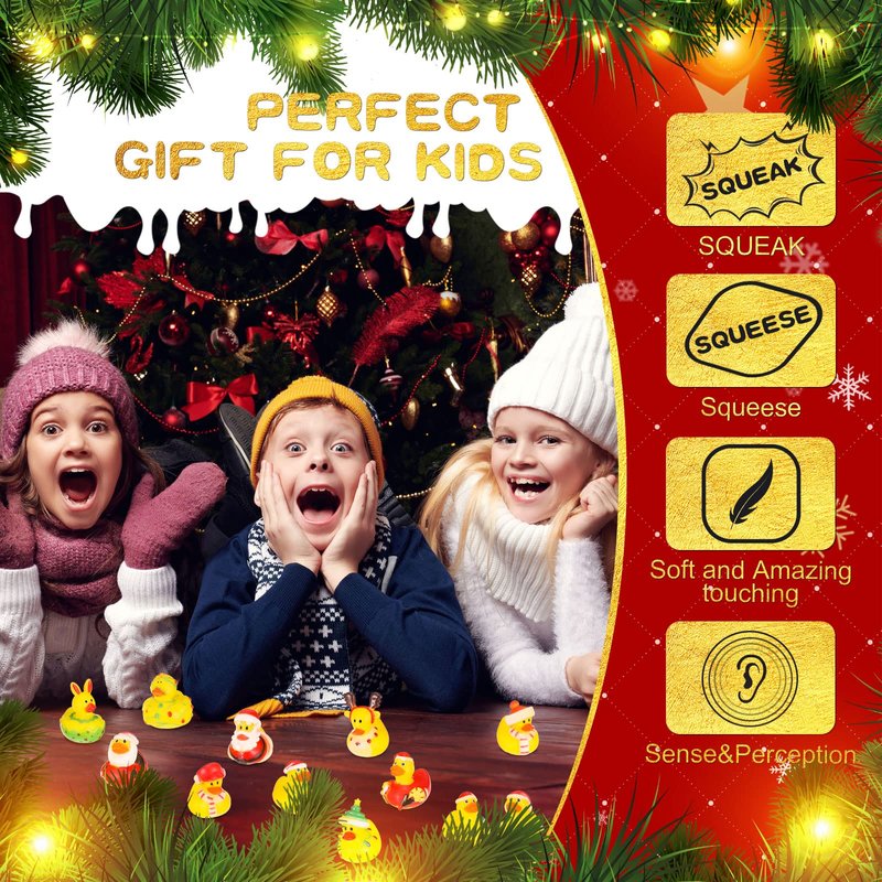 - Widely Use: Christmas duck toys come in assorted styles, suitable for decorating Christmas parties, birthday parties, kids parties, carnival events, and as sock fillers, gift bag fillers, car decorations, party favors, and your boys and girls will love these cute duck toys