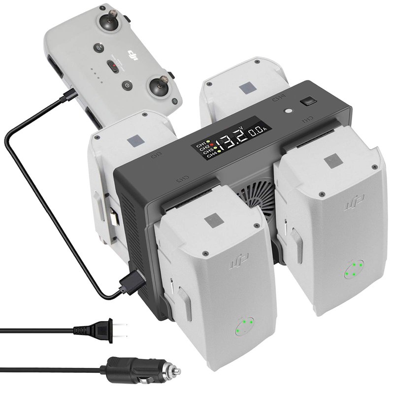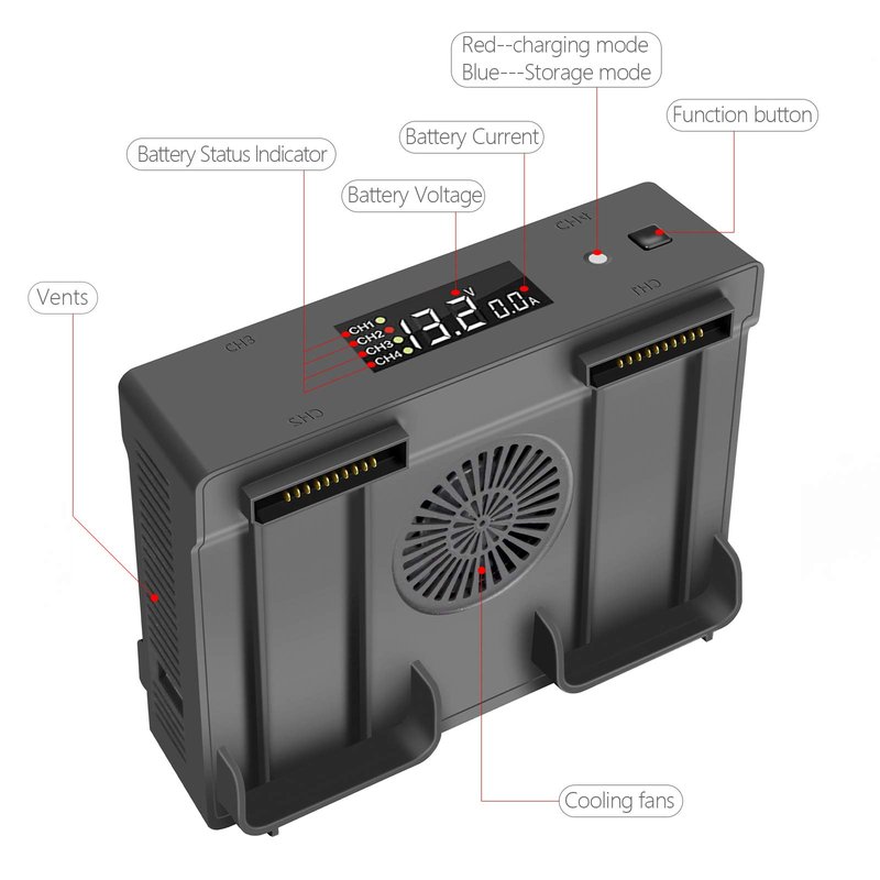 - [Fast Charging] Support 1-4pcs batteries and 1 remote controller parallel charging. it take about 100 minutes full charging 1-4 batteries by home power adapter.