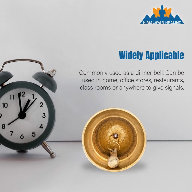 Brass Hand Bells Light and Portable: A traditional yet contemporary design, These simple brass bells are a classic addition to your room. Unlike other metal bells, these bells create a sweet yet clear sound that easily echoes even in spacious rooms or halls. They are light in weight and portable making it travel friendly. Uplight your Spirit : Commonly used as a worship bell in most parts of Asia. The sound of the bell is considered auspicious which welcomes divinity and dispels evil. Mental health Benefits : The vibrations from these brass bells also helps the mind to disengage from ongoing thoughts thus making the mind more receptive. It is scientifically proven that the sound of the bell unites our left and right brain. This synchronization improves confidence and keeps one alert at all times. Premium Quality: Made of high-quality silver steel. It is non-toxic and odorless, hefty and durable, rust-resistant and colorfast.These Handbells stand out in the crowd. Wider Applications: These bells can have multiple purposes as well. Can be used for training pets, waking families up or signaling to students, caregivers can use in retirement homes, patients can use it in hospitals & nursing homes.