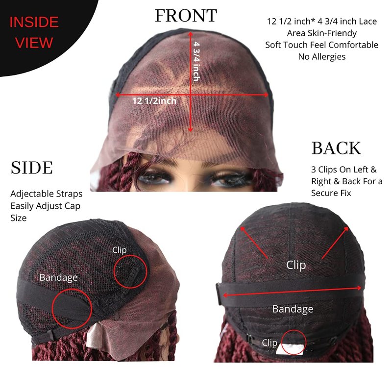 - Attributes: It is 100% fully handmade braided glue-less and 4 3/4"x12 1/2" inches lace front super lightweight twist braided wigs with baby hair. Approximately 31 inches long, approximately 310 gram weight, and lightweight braiding hair texture. Perfect for wig beginners and wigs hobbyist.