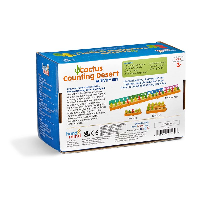 - PRESCHOOL LEARNING ACTIVITIES: The teacher-developed Activity and Game cards are based on their skill focus and guide children through early math activities and open-ended play. Also includes fun cactus facts! The Transparent Spinner can be used to play games or help children create skill-focused games of their own. This set includes 4 Desert Base Five-Frames, 40 Cactus Counters, 20 Double-Sided Math Activity Cards, 1 Transparent Spinner, 2 Double-Sided Spinner Cards, and an Activity Guide.