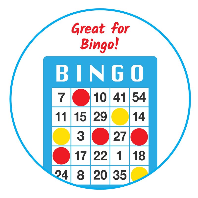 - BINGO CHIPS: They measure one inch in diameter and are red on one side and yellow on the other. Perfect circles for bingo chips and game tokens.