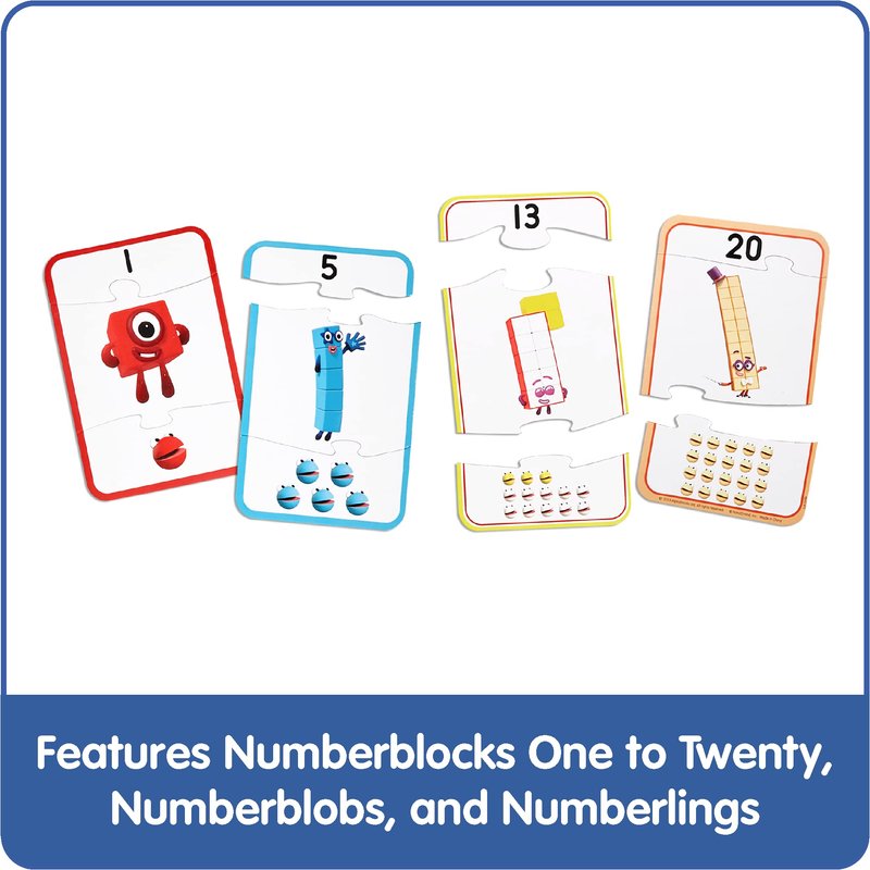 - PRESCHOOL MATH LEARNING TOY: Each set includes 20 self-correcting puzzles featuring Numberblocks One to Twenty. Puzzles measure 6” x 4”.