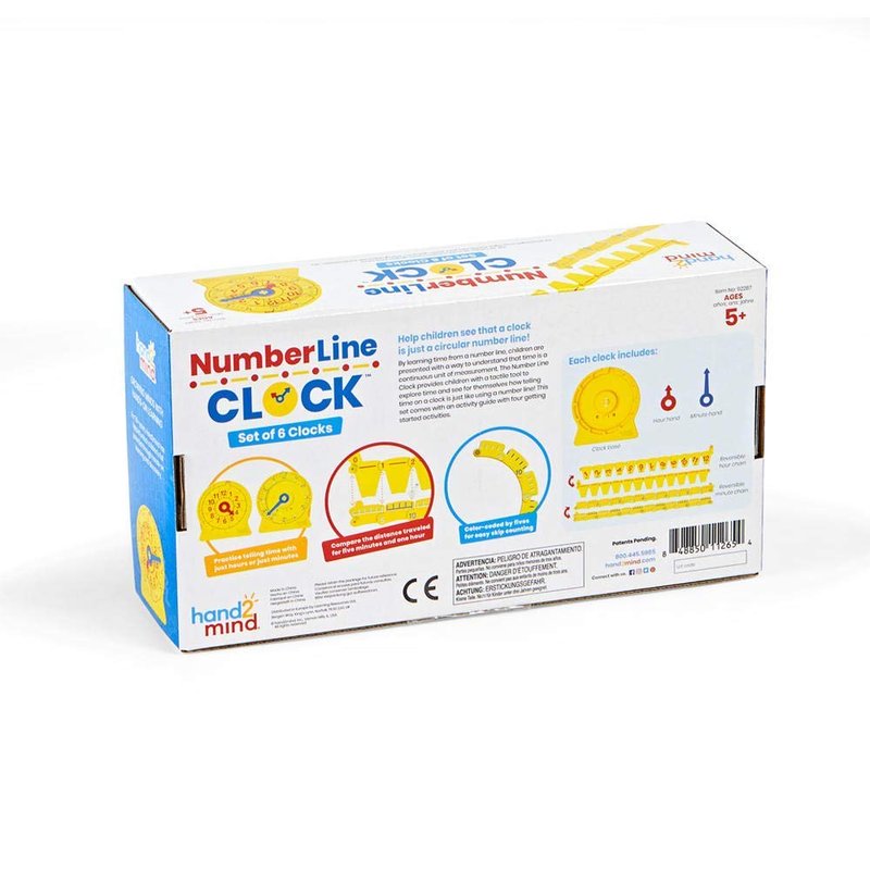 hand2mind NumberLine Clock, Telling Time Teaching Clock, Learn to Tell Time Clock, Analog Classroom Learning Clock, Teaching Time Math Manipulatives, Clocks for Kids Learning to Tell Time (Set of 6)