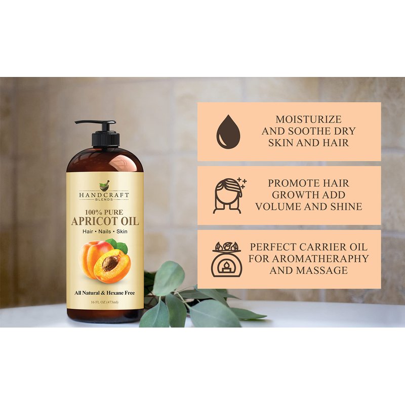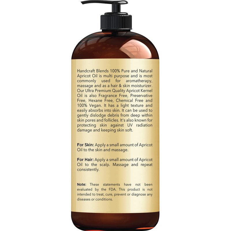 Handcraft Blends Apricot Kernel Oil - 16 Fl Oz - 100% Pure and Natural - Premium Grade Oil for Skin and Hair - Carrier Oil - Hair and Body Oil - Massage Oil - Cold-Pressed and Hexane-Free