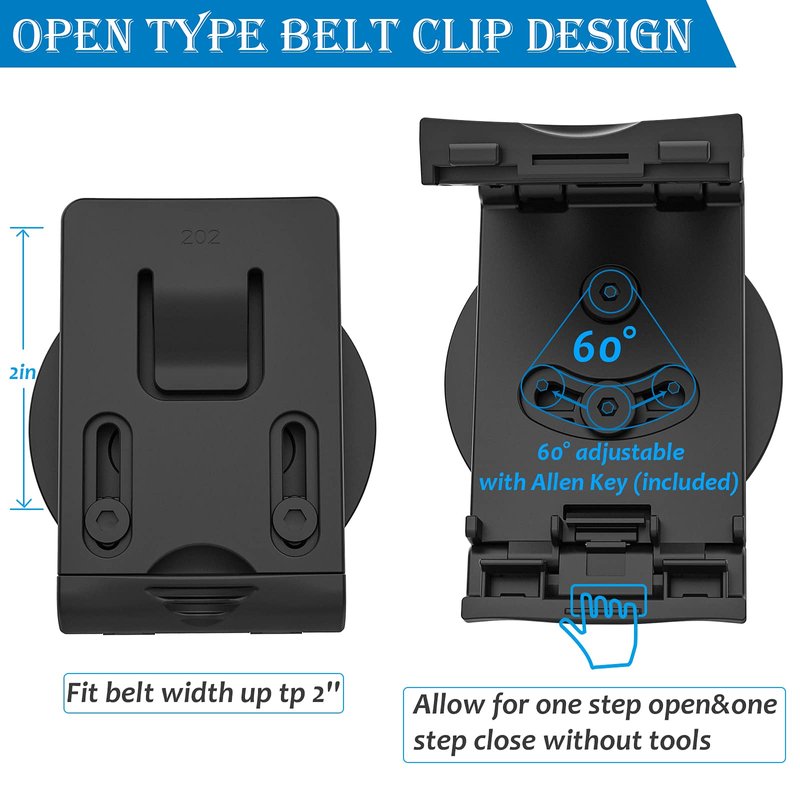 - 【60° ADJUSTABLE OPEN-TYPE BELT CLIP】Open type belt clip allows one step open one step close (without regulating screw), simple set cant from 0-60 degrees to fit a comfortable position with Allen key. This belt cuff holster can slide over the belt to retain their position firmly. Fit belt width up to 2 inch.
