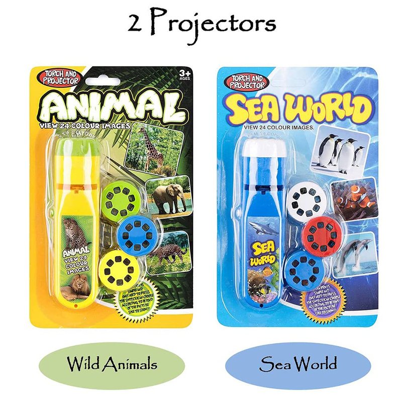 Handheld Flashlight Projector for Kids, MIANTANG 2 Themes 48 Images Early Educational Bedtime Story Baby Toy, Torch Light Wall Ceiling Gift for Toddler Boys Girls (Wild Animals+Sea World)
