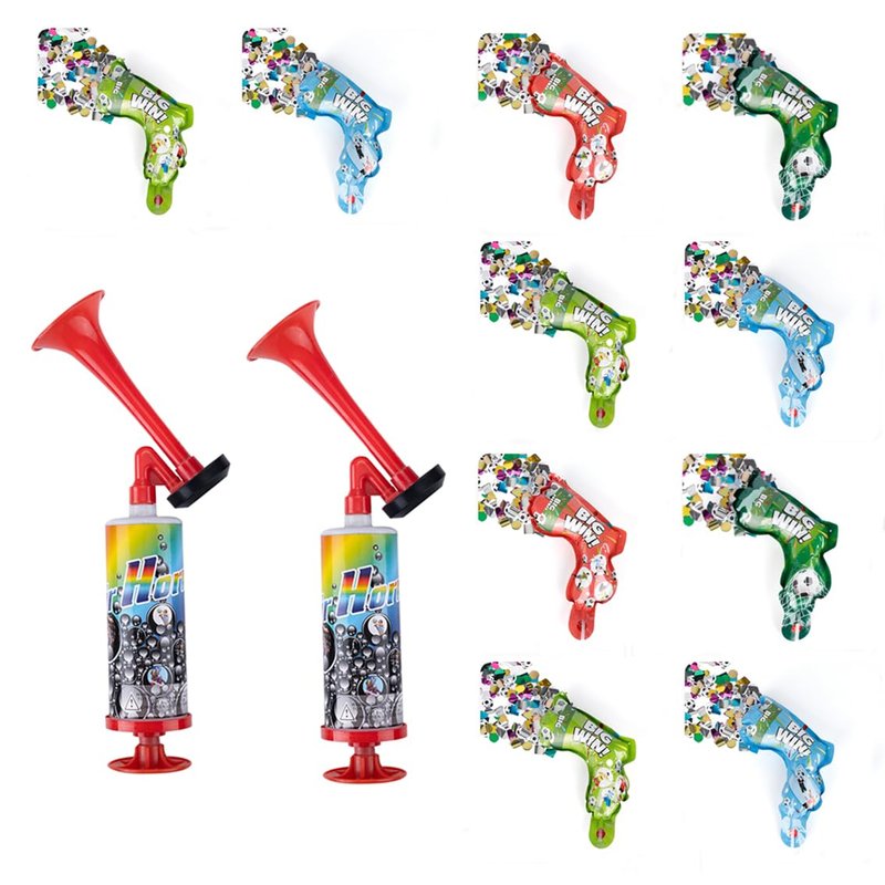 - High Quality: This sets include 2pcs Handheld Air Horn and 10pcs Inflatable Fireworks Guns(Color is random), which are made of safe and harmless material. All are environmentally friendly.