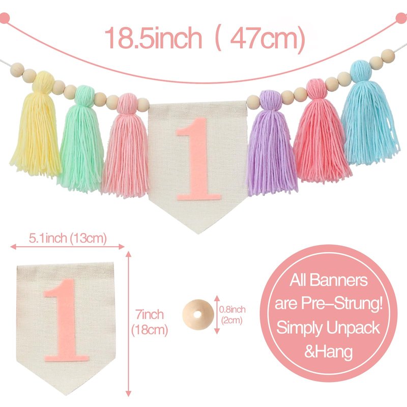 - First Birthday Highchair Banner Decoration:Use this highchair tassel banner to decorate and embellish your child first birthday;also use it as a dessert table or cake photo background image along with the decoration to present the whole gorgeous birthday party
