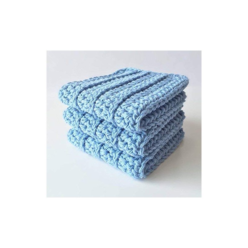 Handmade Crochet Washcloths, 100% cotton washcloths set of 3, Dish Towels, dish cloths, Baby wipes, Baby washcloths, Spa Cloths, Blue Cotton Wash Cloths set of 3