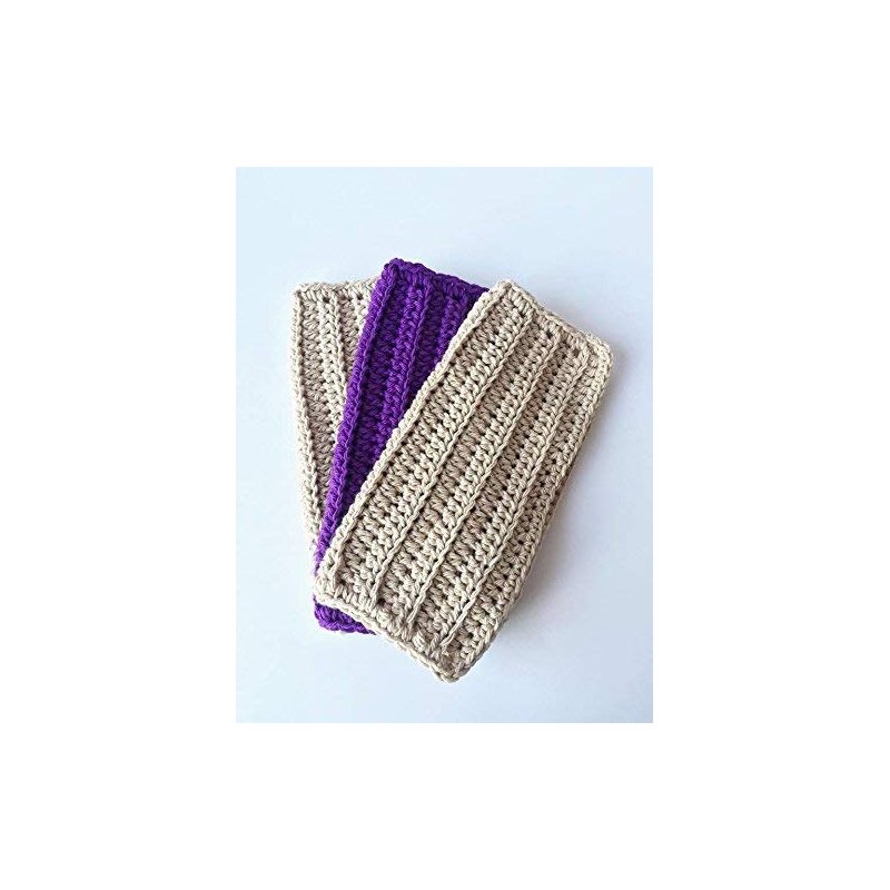 Handmade Crochet Washcloths, Dish Towels, Dish cloths, Baby wipes, Baby washcloths, Spa Cloths, 100% cotton wash cloth, Beige, Purple and Beige Cotton Wash Cloths set of 3