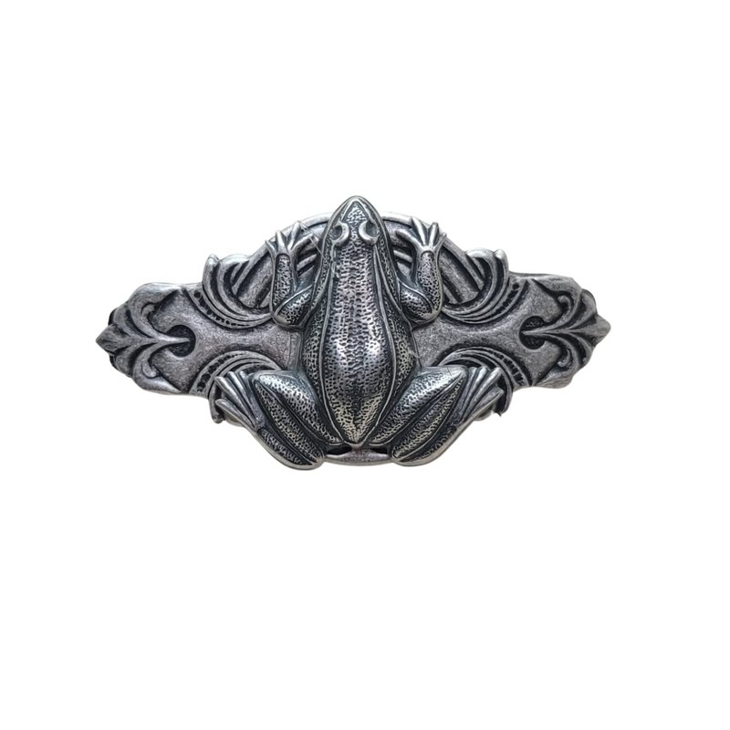 *High quality silver plated brass hair clip. *Oxidized Brass.ornate stamping *Oxidized silver frog *Velvet drawstring gift pouch Measures: 1" x 2 1/2"