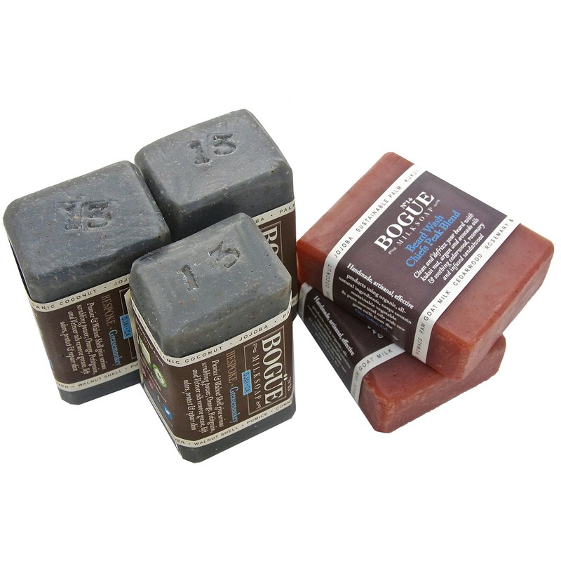 Handmade Goat Milk Soap 5 bar Giftset BOGUE- No.13 & No.14 BESPOKE Greasemonkey Aggregates Remove Grease & Heal and Beard Wash 'Chiefs Peak' Blend to Clean & Defrizz Beards