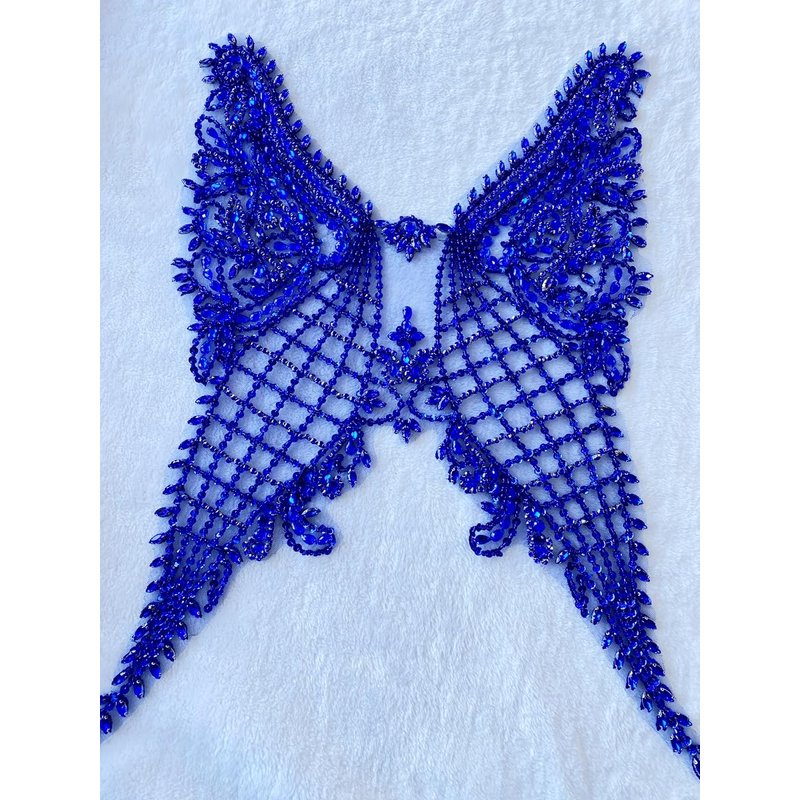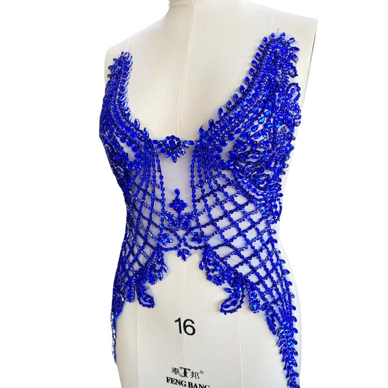Handmade Shining Rhinestones Beads Applique Unique Design sew on Crystal Sequins Trim Patches Decoration Accessories for Wedding Dress DIY 23x16 inches (Blue)