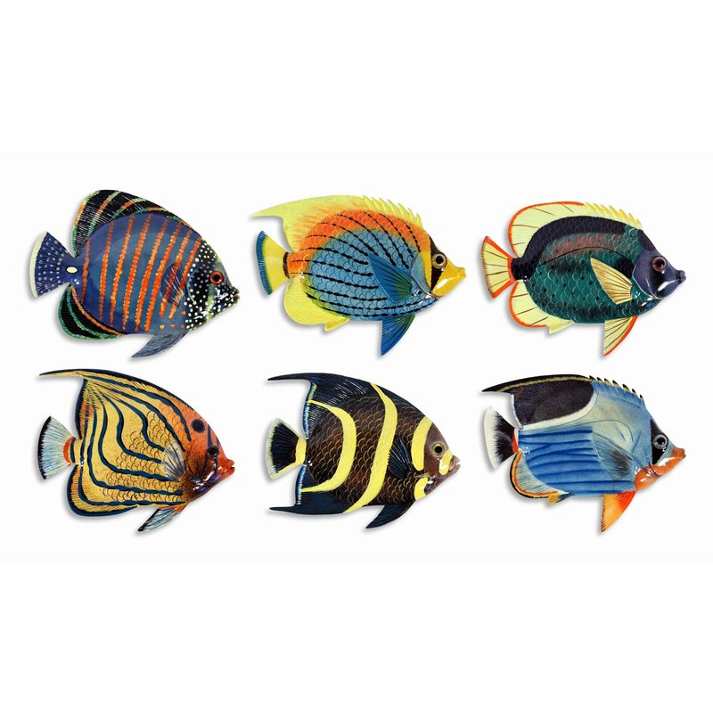 Handpainted L-A Tropical Fish Replica Wall Mount Decor Plaque 6" (Set Of 6)