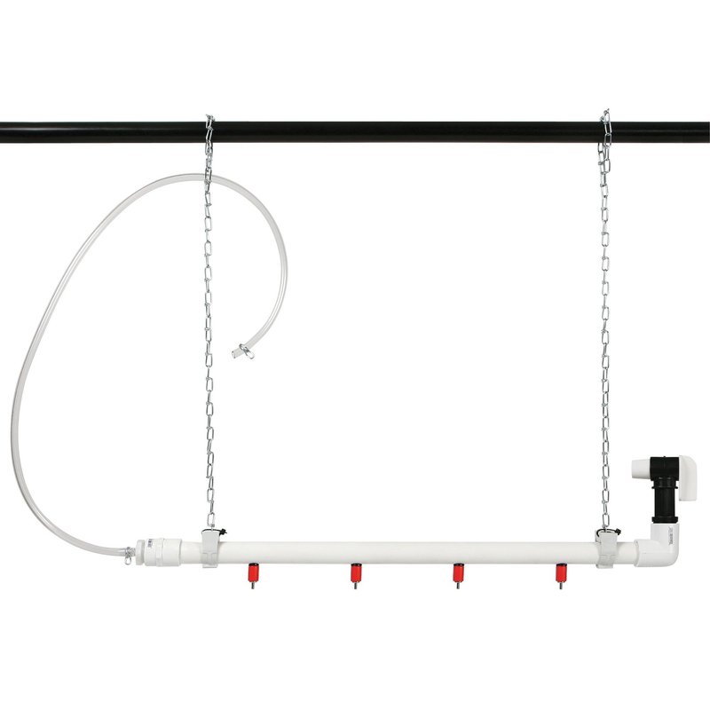 Provide a clean source of water for your birds with our 4 nipple Hanging Tube Waterer. This system will eliminate the need to constantly clean trough waterers. Simply suspend the waterer, attach the hose to a 5 gal (#30495) or larger container for an uninterrupted source of clean water for your birds. This 4 nipple system will accommodate up to 65 medium sized birds or up to 110 chicks. Kit comes complete with hanging hardware, hose and nipples. You will need to provide a water container with a fitting for 1/4" hose.