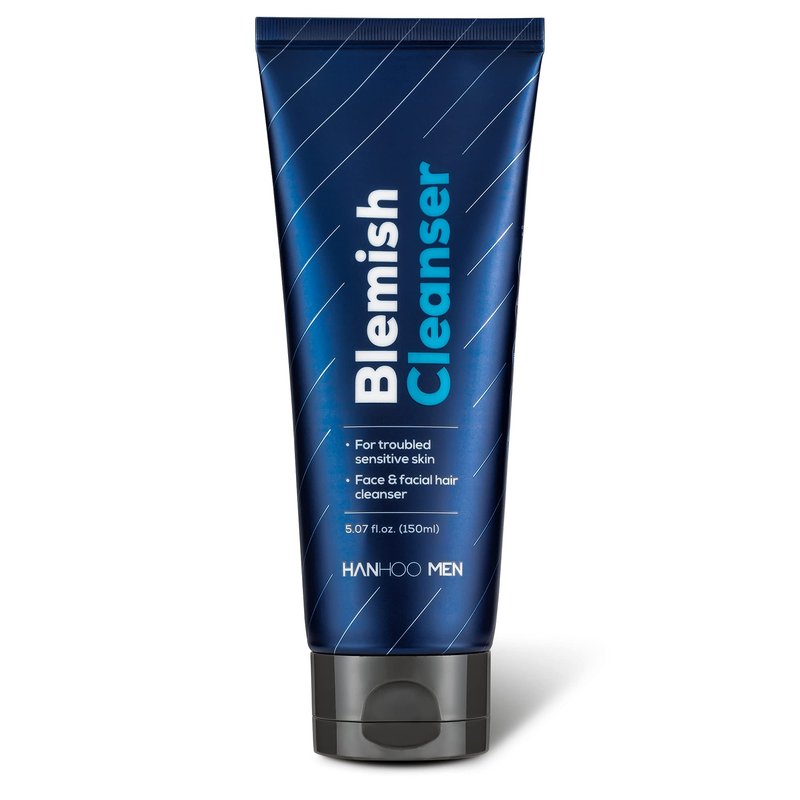 HANHOO Men Blemish Cleanser | Daily Facial Cleanser | Beard and Face Wash with Tea Tree Oil, Probiotics, & Hyaluronic Acid | Soothes Acne-Prone Skin | For All Skin Types | 5.07 fl oz