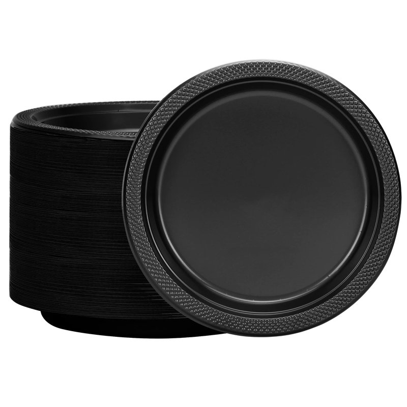 - PACKAGE INCLUDES: 50 Black Round Plastic Plates - 9"