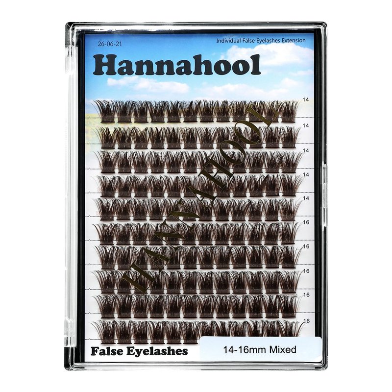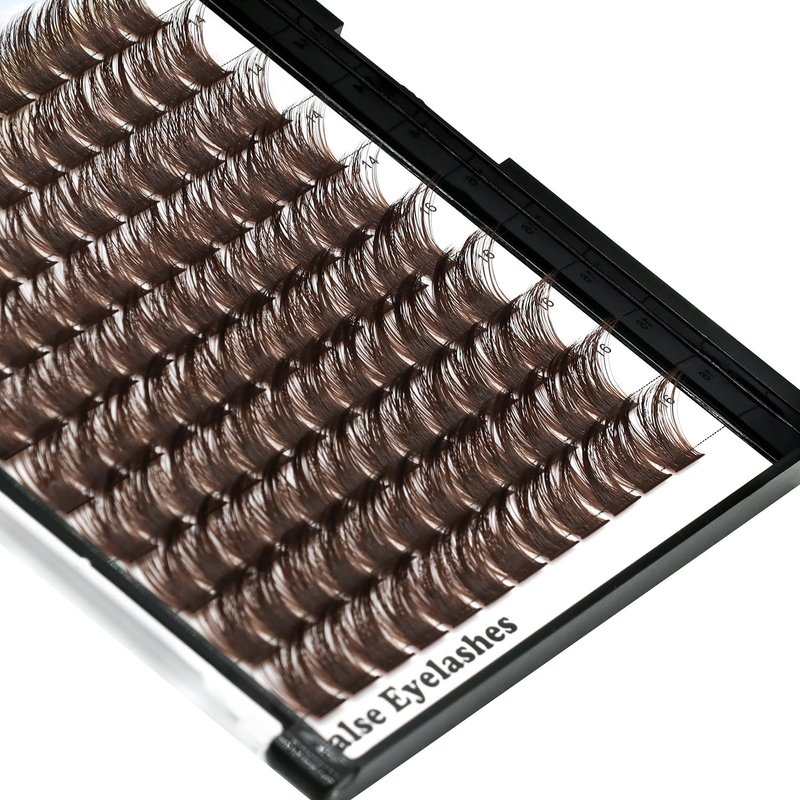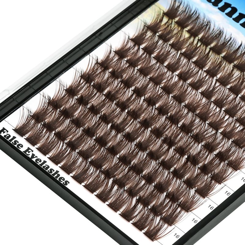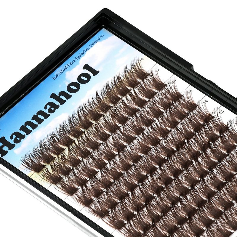 Hannahool 120pcs D Curl Individual Wide Stem Brown Cluster DIY Eye Lashes Extensions Mixed 12-14mm/14-16mm/16-18mm Makeup Dramatic Volume Lashes (Brown-14-16mm)