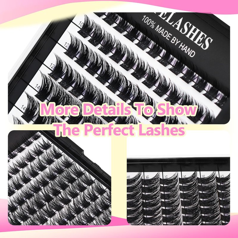 - 🎈Easy to apply: step1,if you try to pinch the clusters off the strips ,Please use the tweezers to pick up the cluster lashes from the bottom instead of tips. step 2,apply the cluster lashes glue and wait about 30 seconds, step 3 apply the lashes on your upper or lower natural eyelashes. Do not touch your eyelid!