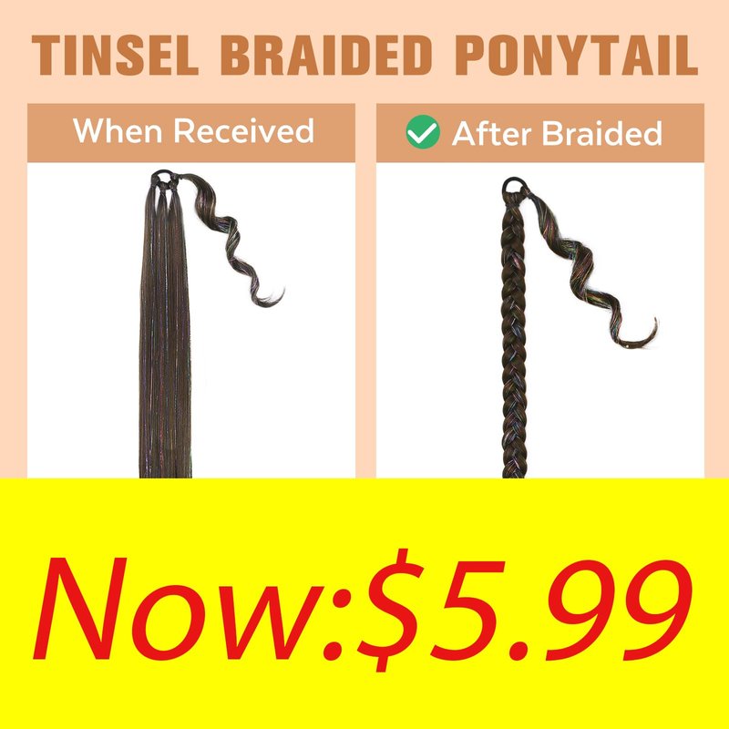 - Ponytail Material: High quality premium heat resistant synthetic fiber tinsel braid ponytail, fashionable and liveliness, soft and natural, Make you more beautiful and charming.